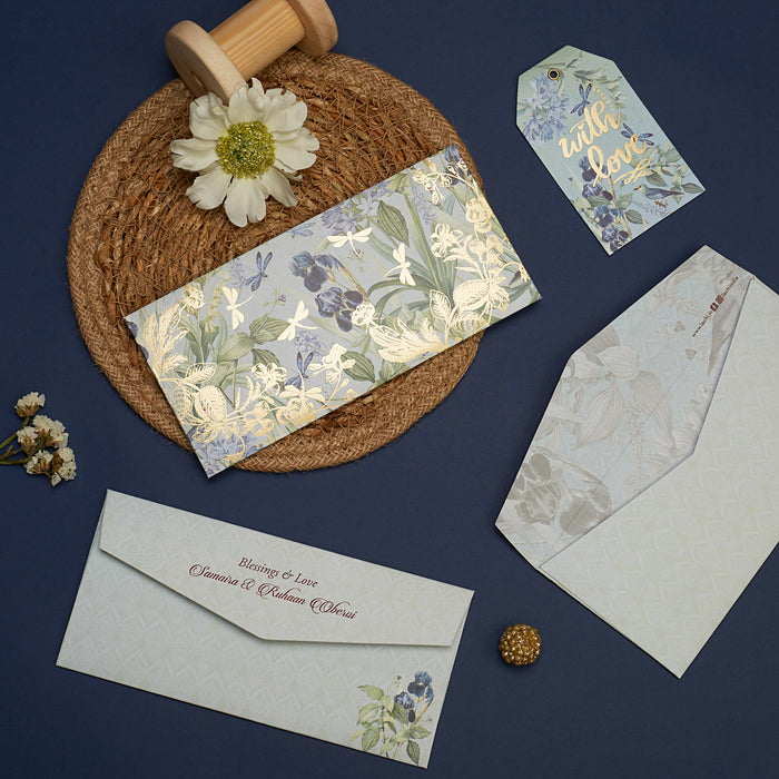 Gardenia flowers, with their ephemeral beauty and captivating fragrance, take center stage in the "Gardenia Glory" Indian Wedding Money Envelope.This design embodies the transient yet enchanting nature of love. Just as the gardenia's beauty unfolds, so does the love story of the newlyweds. This envelope becomes a poignant representation of the fleeting moments of joy and the enduring beauty of a heartfelt connection.