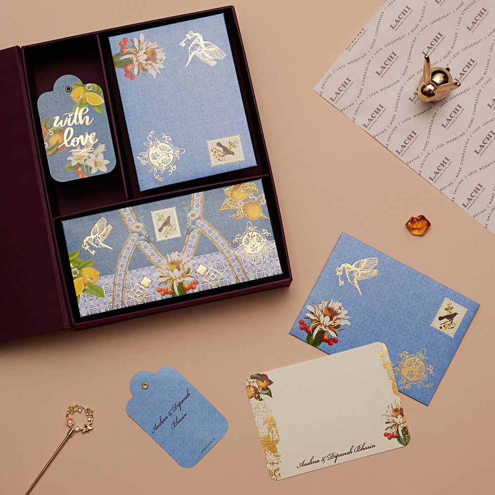 For a truly extravagant gift, consider a Premium gift box. This luxurious gift box can be customised to include three different items, such as money envelopes, notecards, and gift tags. The Trio gift sets, with its elegant design and personalised touch, makes for a thoughtful and sophisticated Diwali gift. The premium quality and customization options ensure that the recipient feels truly special and appreciated. Perfect for any occasion, these trio gift sets add a touch of luxury to your Diwali celebrations.