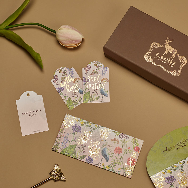Gift your loved ones the charm of our handcrafted personalized stationery sets with The Floral Refuge Duo Box, an ideal choice for wedding celebrations. Choose from two combinations – 10 money envelopes and 10 gift tags, or 20 money envelopes & 20 gift tags, elegantly packed in a luxurious handcrafted gift box. Personalize them with your loved one’s names for an extra touch of warmth, bringing a smile to their faces. This versatile duo box is also available non-personalized/blank, making it perfect for birthdays, anniversaries, return gifts, or any other special occasions. Embrace the eternal elegance of wedding bliss with this beautifully curated and customizable duo box, ensuring your gifts reflect the love and joy of the celebration.