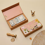 Because generous gifts deserve a grand reveal. Crafted for occasions when an envelope simply won’t do, our Cash Box is designed to hold up to 200 currency notes with elegance and ease. Whether you're gifting a shagun at a wedding, blessing a milestone, or presenting a heartfelt celebration envelope—this is the elevated way to do it. Hand-illustrated patterns, signature gold foil detailing, and a magnet-secured flap come together in a keepsake box that feels personal, purposeful, and unforgettable.