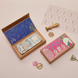 Because generous gifts deserve a grand reveal. Crafted for occasions when an envelope simply won’t do, our Cash Box is designed to hold up to 200 currency notes with elegance and ease. Whether you're gifting a shagun at a wedding, blessing a milestone, or presenting a heartfelt celebration envelope—this is the elevated way to do it. Hand-illustrated patterns, signature gold foil detailing, and a magnet-secured flap come together in a keepsake box that feels personal, purposeful, and unforgettable.