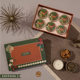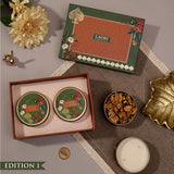 The Festive Grace (Orange) Gift Set is a curation of light, flavour, and festive warmth — with artisanal gourmet treats, soothing tea blends, and our 100% soy, IFRA-certified, allergen-free candles. A special edition also includes a set of notecards with envelopes for personal messages. Each set comes in a complimentary keepsake box, tied with a herringbone ribbon, and finished with our signature wax seal. Gourmet treats, teas, and candles come packed in gold-finish tins — a presentation as heartfelt as the gift itself.