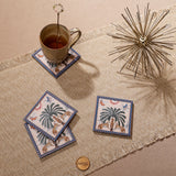 Rooted in strength, Palm Bastion celebrates the timeless union of leopards and palms. Terracotta borders echo heritage architecture, while the wild and the regal stand guard in bold harmony. Small details, big impression. This set of coasters, wrapped in premium vegan leather with considered accents, brings a layer of design to every sip. Subtle yet striking, they