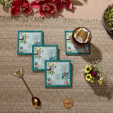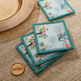 Refined and lush, Verdura Court is an ode to tropical gardens. Exotic birds and botanicals unfurl across elegant stripes, balancing vibrant escape with stately order. Small details, big impression. This set of coasters, wrapped in premium vegan leather with considered accents, brings a layer of design to every sip. Subtle yet striking, they complete the table setting with charm that draws attention.