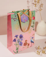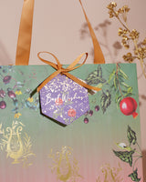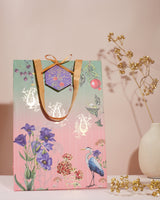 Indulge in the sheer opulence of this meticulously designed gift bag. Crafted to perfection, it's tailor-made for presenting small to medium-sized treasures. Its resplendent gold foiled embellishments exude luxury, while the handles are adorned with a fine herringbone pattern ribbon, adding an exquisite touch. Choose to personalize the tags with your names for a truly bespoke experience.