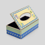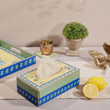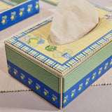 Playful yet regal, Monkey Monarch brings whimsy to the table. A crown of citrus and vibrant gingham frame the monkey's court, creating a story of light-hearted luxury with Mediterranean charm. An everyday essential reimagined as design. Detailed with care and finished with quiet strength, this tissue box is wrapped in premium vegan leather - proof that even the most functional pieces deserve distinction.