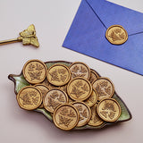 Set of 10 or 20 Self Adhesive Wax Seals - Handmade using real sealing wax. Complete with self adhesive backings for ease of application, simply peel & stick. Each seal measures. 25mm in size, depending on the shape and has a smooth velvet sheen with an ultra-metallic finish. Perfect for sealing your notecards, envelopes or invitations.