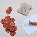 Set of 10 or 20 Self Adhesive Wax Seals - Handmade using real sealing wax. Complete with self adhesive backings for ease of application, simply peel & stick. Each seal measures. 25mm in size, depending on the shape and has a smooth velvet sheen with an ultra-metallic finish. Perfect for sealing your notecards, envelopes or invitations.