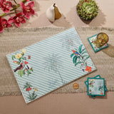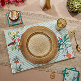 Refined and lush, Verdura Court is an ode to tropical gardens. Exotic birds and botanicals unfurl across elegant stripes, balancing vibrant escape with stately order.