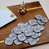 Set of 10 or 20 Self Adhesive Wax Seals - Handmade using real sealing wax. Complete with self adhesive backings for ease of application, simply peel & stick. Each seal measures. 25mm in size, depending on the shape and has a smooth velvet sheen with an ultra-metallic finish. Perfect for sealing your notecards, envelopes or invitations.